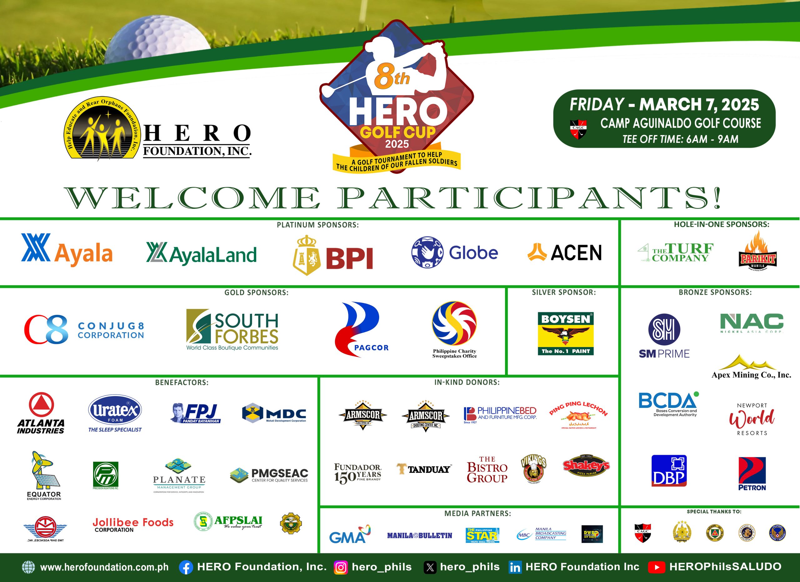 The 8th HERO Golf Cup was made possible through the support of many generous corporations, organizations, and individuals who share in our cause to care for the orphans our military heroes have left behind.
